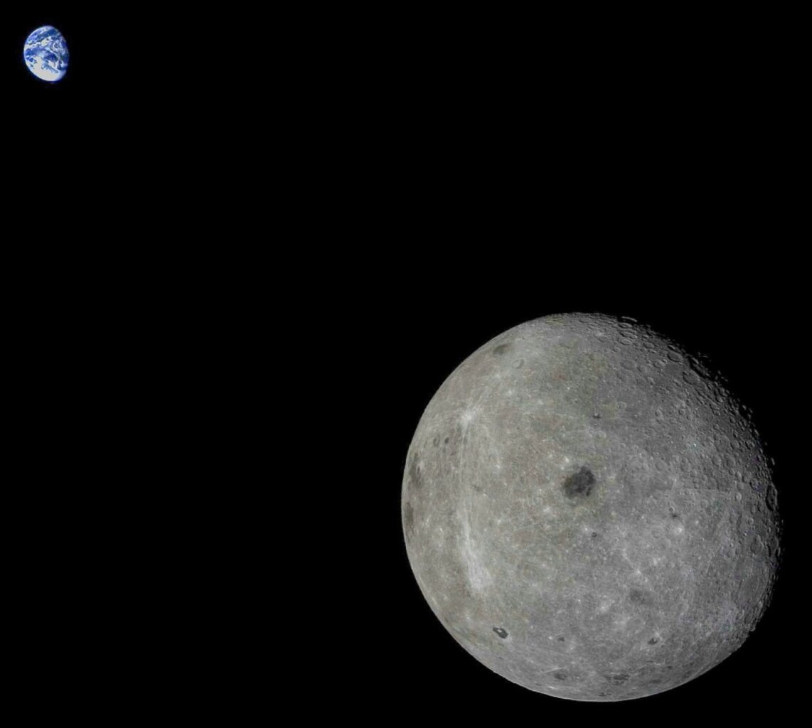 Widok na drugą stronę Księżyca z Ziemią w tle