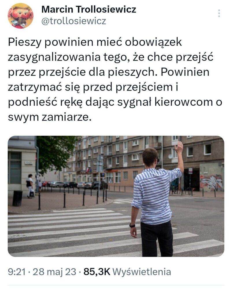 ps. A ten chłopak na zdjęciu po co podnosi rekę? Skoro stoi przed pasami to znaczy, że chce po nich przejść na drugą stronę.-