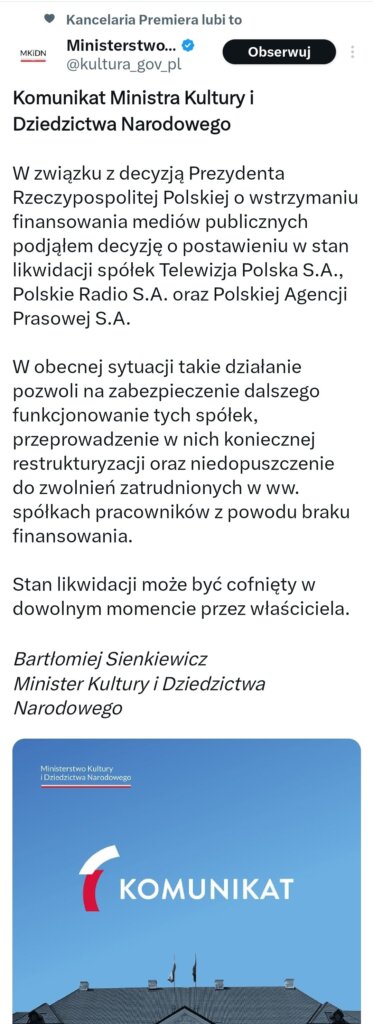w ogole słuchałem dzisiaj sobie tego Warzechę (wstawiłem w osobnym wpisie) i pomyślałem, że platformersi mogliby zrobić tak, żeby zacząć zwalniać dziennikarzy – np. w PR Rzeszów, TVP Rzeszów, tłumacząc, że to z winy Dudy i musza tak zrobić, bo nie mają środków, ale będą się starać znaleźć jakiś budżet, by uratować te placówki medialne. No i masz…:) w sumie tego chyba chcieli, przecież ciągle trąbili o tym, że będą likwidować telewizję, jak dojdą do władzy.