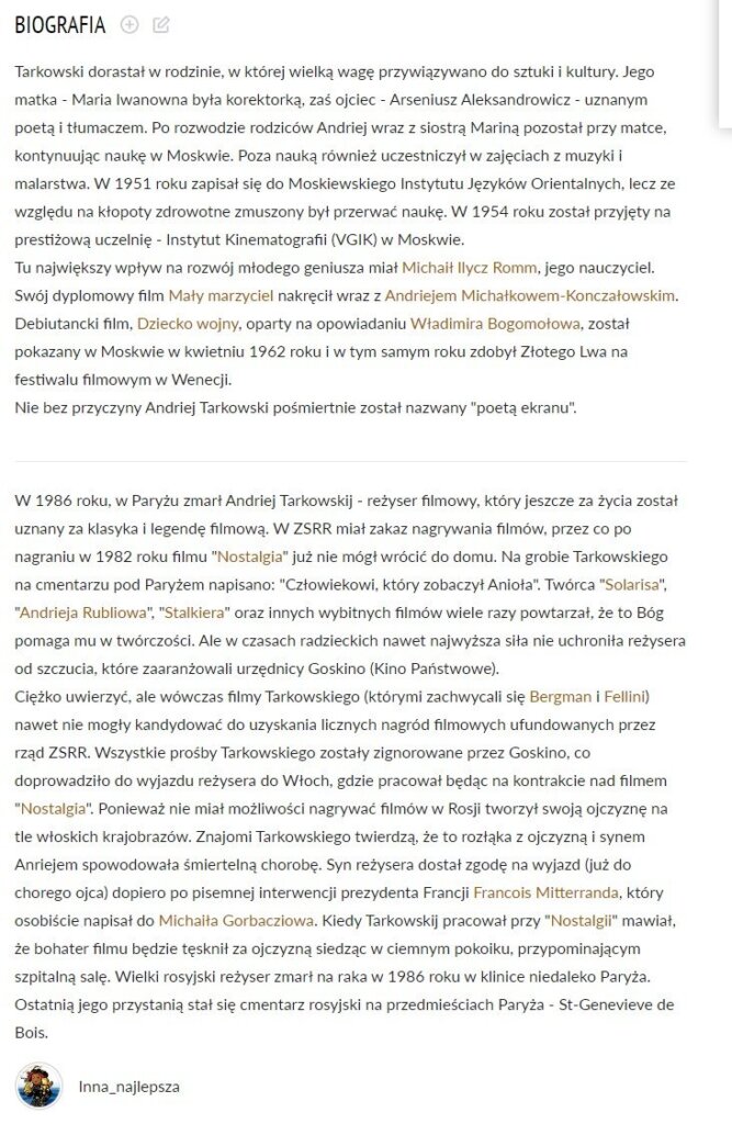 @joanna załączam biografię Tarkowskiego.. ech ciekawe, jakie filmy jeszcze by nakręcił, gdyby żył dłużej….