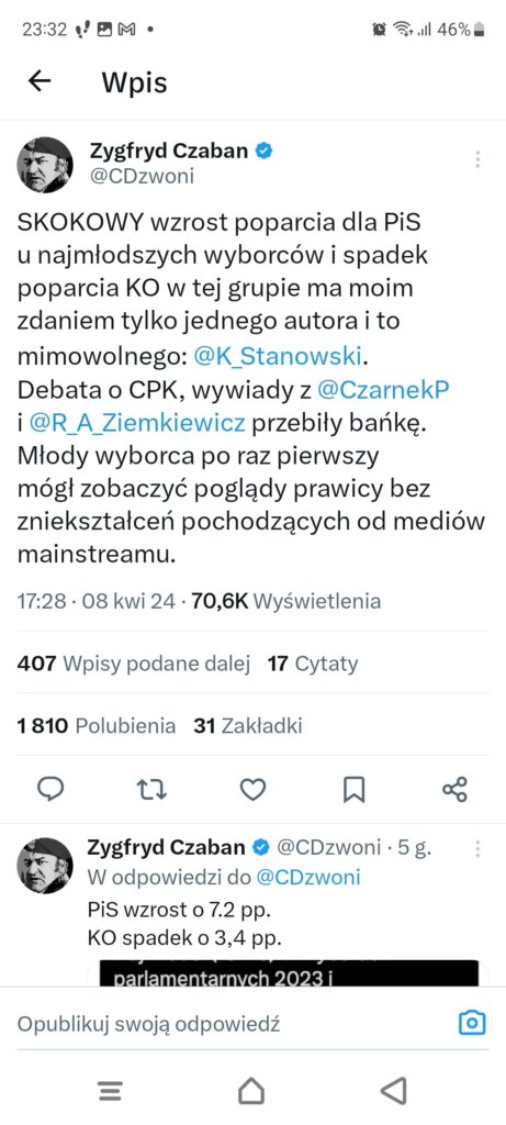 @koszalek to, ze mieli media publiczne, to nic nie znaczy, bo nikt prócz przekonanych tego nie oglądał. Tak to urządzili i taki był efekt. Trzeba było stworzyć media bardziej otwarte, nawet może dać tvp2 Platformie?? Zapraszać na debaty Konfederację, Warzechę, dać program Ziemkiewiczowi. Stworzyć telewizję, którą oglądaliby wszyscy (coś jak kanał ZERO). Wciągnąć dobrych publicystów ze wszystkich stron. A oni zrobili właściwie odwrotnie – stworzyli medium, którego nie oglądał nikt poza tymi, którzy i tak byli dawno przekonani. Wiec co by tam nie puścili, jakich argumentów, to i tak nie dotarło by do nikogo poza ich ścisłym elektoratem. Ja mysle, ze fajnie tak pogdybać 🙂 to działa dobrze na psychikę, można odreagować, zrelaksować się myślą, że mogło być lepiej